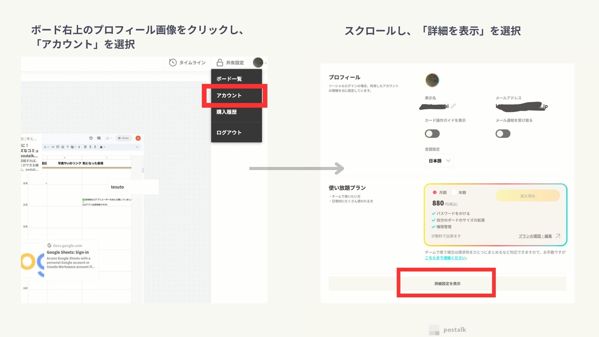 でログイン」を停止する」を参考に、ログインしてしまったアカウントで「postalk」の「アクセス権を削除」して、再度ログインをしてください。
